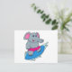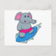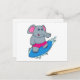 Cartão Postal Elefante como Surfista com Prancha de Surfe