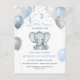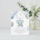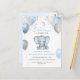 Este convite de aniversário apresenta um cartão-postal com um adorável elefante menino em aquarela com balões e confetes. Fácil de personalizar clicando em "Personalizar".
