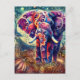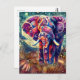 Cartão Postal Elefante Whimssso na Noite Azul Estrelas Roxas Lua