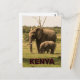 Cartão postal de uma família de elefantes a pastorear no Quénia.