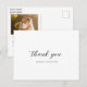 Elegant wedding thank you postcard featuring a simple and classic design with traditional serif and elegant script fonts. Use the template to add your favorite photo and personalized message.