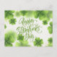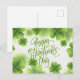 Celebrate the luck of the Irish with this stunning and elegant St. Patrick's Day postcard. The design features a beautiful arrangement of vibrant green clovers and shamrocks dancing amidst shimmering gold glitter and delicate bokeh dots. A graceful, handwritten-style "Happy St. Patrick's Day" script takes center stage, making it the perfect choice for sending heartfelt holiday wishes to friends and family. This sophisticated and festive card is a lovely way to share a bit of Irish charm and brighten someone's mailbox this March.