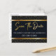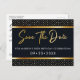 Elegante cartão postal de save the date de 50º aniversário. Recursos de design de moldura dourada em fundo escuro. Para editar este design, clique em personalizar ainda mais.