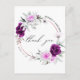 Cartão Postal Elegante Agradecimento de Casamento Rústico Roxo B
