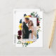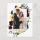 Elegante Aquarela Rosa Burgundy Floral e Verde Folhagem Noiva e Noivo Amor e Agradecimento Cartão de Obrigado inclui rosas burgundy e rosadas, flores azuis, girassóis, folhagem botânica e folhas de eucalipto.