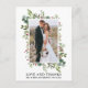 Elegante Cartão de Agradecimento de Foto de Casamento com Aquarela Folhagem de Inverno inclui folhas de eucalipto e frutos vermelhos de azevinho.