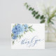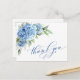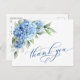 Cartão Postal Elegante Aquarela Azul Hydrangea Flor Obrigado