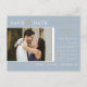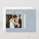 Coloque um anel à volta da data para dizer aos seus convidados para salvar a data sobre os vossos núpcias! (Instruções abaixo — leia sobre) Este cartão postal de aviso de anúncio de noivado apresenta caligrafia elegante e letra simples de serifpografia com fotografia e código QR num fundo azul empoeirado com linhas falsas de ouro, anel de coração dourado e texto preto/branco para um olhar limpo minimalista e moderno, que é uma bela maneira de dizer aos seus convidados para informarem sobre o seu próximo casamento. Anuncie à sua família e amigos que vai se casar com este convite e adicione um toque pessoal com belas fotos de você e sua próxima metade melhor. A simplicidade desta design adiciona um toque de elegância ao seu casamento, exceto os cartões de convite. Funciona bem com muitos temas de casamento e definitivamente um excelente extra para o seu casamento. Basta personalizar os nomes e o texto em alguns passos fáceis e personalizar o cartão-postal do convite com sua foto do casal feliz e substituir o Código QR pelo seu. —INSTRUÇÕES COM O LOCAL DA DATA DE ANEL— Para alterar o posicionamento do anel, clique no botão azul 'editar usando a ferramenta design na seção de personalização. Nota: A elegante caligrafia dos termos "Salvar a Data" e "Convite Formal para Seguir", assim como as linhas e outros trabalho de arte gráficos e elementos não podem ser editados, apagados ou movidos. Eles estão consertados. Se precisar alterar a cor, você pode personalizar o cartão-postal do convite. Você pode personalizar e personalizar o cartão-postal do convite para ajustado das necessidades do evento de casamento e clicar apenas em personalizar o cartão do convite.