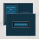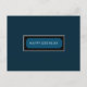 Clássico design minimalista elegante com uma nota de "Feliz aniversário" em azul marinho dentro de uma delicada moldura branca sobre um fundo azul marinho. Há um "Feliz aniversário, papai" personalizado no verso.