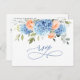 Cartão Postal Elegante Blue Hydrangea Blush Rosas Weding RSVP