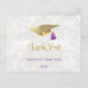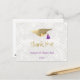 Elegante boina dourada com borla roxa cartão de agradecimento de formatura personalizado. Altere facilmente o nome do graduado e o ano usando o menu personalizar este modelo. Crie o cartão de agradecimento de formatura personalizado perfeito.