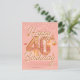 Entre em uma celebração tão vibrante quanto um nascer do sol com nosso cartão-postal personalizável de 40º aniversário. O fundo brilha com uma tonalidade suave e convidativa, preparando o cenário para uma celebração verdadeiramente pessoal. O "40" em negrito no centro brilha como um farol de conquista, seus acentos cintilantes lembrando confetes suspensos no ar durante um momento alegre.