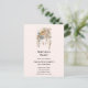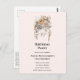 Cartaz de convite de festas com buquê bonito de flores em cores neutras de marrom, pêssego e laranja. Um apanhador de sonhos com penas adiciona um elegante talento místico.