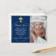 Cartão Postal Elegante Cruz Azul e Dourada Meninos Batismo Agrad
