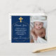 Cartão Postal Elegante Cruz Azul e Dourada Meninos Batismo Obrig