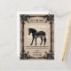 Este design de convite para o casamento mostra um cavalo preto em greve, graciosamente envenenado contra um fundo bege quente. Os padrões florais e de escrolagem de ornamentado enquadram a imagem, adicionando um toque de sofisticação e charme. Os intrincados detalhes de borda em tons negros e dourados evocam elegância do eterno, fazer-o uma representação perfeita de amor, força e beleza para uma memorável celebração de casamento. Opções de personalização: personalize com seus nomes, data de casamento e detalhes de local para criar uma manutenção exclusiva para seu dia especial.
