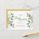 Desmarque o envelope e utilize este cartão postal elegante para o seu próximo evento de chá de fraldas! É neutro em termos de gênero e fácil de atualizar e apresenta um elegante design de aquarela macia de folhas verdes de eucalipto sábio com folhas de ouro e ramos florais de hálito de bebê em cada lado da frente com negrito formando a palavra Chá de fraldas. Podem ser encontrados detalhes extras no verso. Tão fácil de atualizar!