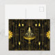 Gatsby dourado e preto, cascata com taças de champanhe e flores. Linhas e formas decorativas em design contínuo.