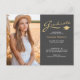 Este anúncio de formatura ou cartão postal de agradecimento duplo face apresenta um estilo moderno fundido com um script de caligrafia elegante em dourado e branco sobre cinza. As fotos são uma na frente e uma no verso. Para ver mais itens como este, visite minha loja aqui na "www.Zazzle.com/LakeViewCardCo". Obrigado