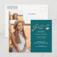 Cartão Postal Elegante Moderno Script Turquesa e Dourado | 2 Fot