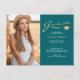 Este convite de formatura ou cartão postal de agradecimento duplo estiloso com 2 fotos apresenta texto moderno fundido com escrita caligráfica elegante em dourado e branco sobre turquesa. As fotos são uma na frente e uma no verso. Para ver mais itens como este, visite minha loja aqui na "www.Zazzle.com/LakeViewCardCo". Obrigado