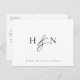 Cartão Postal Elegante Monograma Preto e Branco de Casamento Obr