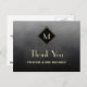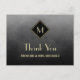 Expresse suas obrigados com seu cartão-postal, elegante e na moda, preto e obrigado de casamento com monograma. Essa simples e sofisticada design de gradiente escovado com uma estrutura moderna em forma de diamante pode ser personalizada adicionando a inicial monificada da noiva e do noivo recém-casados, assim como uma mensagem personalizada. Imagem plana, NÃO metálica.