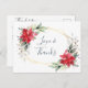 Cartão Postal Elegante Red Poinsettia Winter Greenery Obrigado