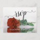 Este belo cartão de resposta facilitará a resposta dos seus convidados ao seu convite de casamento. O design apresenta uma linda rosa cor laranja-ferrugem refletida em uma poça de água com ondas e ondulações, e um título de caligrafia em script com renda. O verso é projetado para que seus convidados preencham e devolvam com espaço para indicar sua escolha de refeições, bem como o número de convidados que estarão presentes.