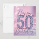 Cartão Postal Elegante Roxo Suave e Brilho Prateado 50º Aniversá