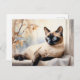 Este cartão postal bonito apresenta um elegante gato siamês relaxando por uma janela, em um estilo aquarela. Uma escolha na moda para amantes de gatos.