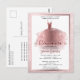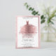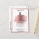 Este convite elegante de Quinceañera apresenta um lindo vestido rosa dourado com detalhes de diamante e texto personalizável em um fundo de mármore rosa suave. Perfeito para convidar os convidados para a sua celebração especial de 15 anos.