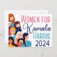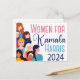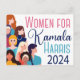 Belo postal político com um desenho de mulheres de muitas etnias e raças para uma mulher democrática votando em Kamala Harris na eleição presidencial de 2024. As raças negra, hispânica, muçulmana, caucasiana e todas as raças se juntam como um grupo feminista para votar na nossa primeira presidente feminina.