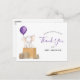 Obrigado seus convidados por comemorar a mamãe! Este obrigado que você faz no cartão-postal apresenta um elefante aquarela com um balão roxo sentado sobre uma pilha de caixas de envio. Corresponde ao nosso chá de fraldas elefante por coleção de correio. Personalize com suas informações ou clique em "Clique para personalizar mais" para editar estilos de fonte, tamanho e cores.