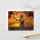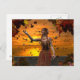 Cartão Postal Elf caindo sai contra um sunset de outono