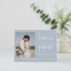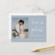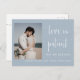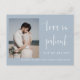 Este postal de convite para o anúncio do casamento apresenta uma caligrafia elegante e uma letra simples de tipografia sans serif com uma fotografia num fundo azul empoeirado para um olhar minimalista e moderno limpo, que é uma bela forma de informar sobre o seu próximo casamento. A simplicidade desta design adiciona um toque de elegância aos seus cartões de anúncio de casamento. Funciona bem com muitos temas de casamento e definitivamente um excelente extra para o seu casamento. Apenas personalize os nomes e o texto em alguns passos fáceis e personalize o cartão-postal do convite com sua foto do casal feliz para dar um toque pessoal agradável ao seu cartão-postal. Por favor, note-se: a elegante caligrafia das expressões "O amor é paciente, mas não somos" e "nada de rico só o amor" juntamente com as linhas e outros elementos gráficos e trabalhos de arte não podem ser editados, apagados ou movidos. Eles estão consertados.