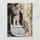 Gatinho em uma caixa de correio, procurando por e-mail, trazendo e-mail ou apenas sendo curioso com o cartão postal fotográfico