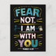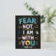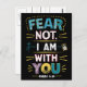 Um cartão postal com as palavras não teme, eu estou com você em uma fonte ousada e tranquilizadora. As palavras estão rodeadas de cores pastéis suaves e designs florais delicados, criando um sentimento de paz e segurança.
