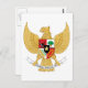 Emblema nacional da Indonésia. O emblema nacional da Indonésia chama-se Garuda Pancasila. A parte principal do emblema nacional indonésio é o Garuda com um escudo heráldico no peito e um pergaminho apertado pelas pernas. Os cinco emblemas do escudo representam Pancasila, os cinco princípios da ideologia nacional indonésia. As garras Garuda agarrando um rolagem branco de fita gravada com o lema nacional Bhinneka Tunggal Ika escrito em texto negro, que pode ser vagamente traduzido como "Unidade na Diversidade". Garuda Pancasila foi projetada pelo sultão Hamid II de Pontianak, supervisionado por Sukarno, e adotada como emblema nacional em 11 de fevereiro de 1950.