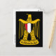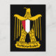 Casaco do Egito. A casaco de braços do Egito (Árabe Egípcio: ش ع ا م ص ر) é uma águia ouro olhando em direção à esquerda do espectador. A "Águia de Saladin" tem um pergaminho no qual o nome do Estado aparece na escrita árabe, Gumhūriyyat Mívore al-'Arabiyyah (República Árabe do Egito). A águia carregar em seu seio um escudo com as cores da bandeira - mas com uma configuração vertical em vez de horizontal. Ao aparecer na bandeira nacional, a águia é inteiramente em ouro e branco.