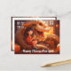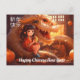 Personalizável no cartão postal chinês de 1º e 2º ano com uma ilustração emocionante, com uma jovem chinesa vestida de roupas festivas vibrantes, com um sorriso radiante no rosto. Ela encanta alegremente perto de um magnífico dragão ouro, simbolizando prosperidade e boa sorte, enquanto celebram juntos o Ano Novo Chinês.