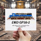 Locomotiva diesel EMD GP38-2 com cores azul e branca. Divisão EletroMotiva GM EMD GP38-2 para comboios de mercadorias GATX. Trabalho de arte detalhado enfatizando suas cores vibrantes e o apelo rústico, colocado contra um pano de fundo texturizado. Captura a nostalgia e a design industrial dos trens clássicos.