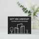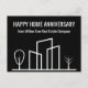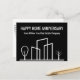 Este cartão postal de Aniversário Casa Feliz moderno é personalizado com o nome da sua empresa de imóveis. Estes cartões preto e branco apresentam um simples desenho de uma vizinhança com uma árvore de cada lado. Envie para clientes antigos para lembrá-los de indicar amigos e familiares que estão procurando comprar ou vender sua casa. Marketing de negócios de imóveis significa entrar em contato com clientes repetidos e pedir suas referências.