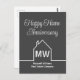Este cartão-postal de aniversário de casa feliz cinza escuro é simples e sutil com seu monograma e nome da empresa de imóveis em branco. Ele apresenta um contorno branco minimalista chic de uma casa. Cartões-postais modernos de negócios de imóveis para marketing de corretor de imóveis para entrar em contato com clientes antigos.
