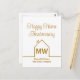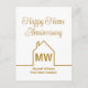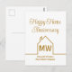 Este cartão-postal moderno do Feliz Aniversário Casa dourado é simples e sutil com seu monograma e nome da empresa de imóveis. Ele apresenta um contorno branco minimalista e elegante de uma casa. Cartões-postais modernos de imobiliária para marketing de corretor de imóveis para entrar em contato com clientes antigos.