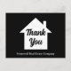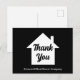 Cartões-postais de agradecimento da empresa de imóveis chiques em preto e branco modernos. Personalize com o seu negócio de imóveis sob a casa simples para um cliente comprador de casa ou corretor de imóveis profissional.