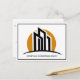 Este cartão-postal comercial é chic e moderno. Personalize com seu nome e informações da sua empresa para uma grande cerimônia de abertura ou de corte de fitas. Ele apresenta um desenho de linha branca e preto minimalista em forma de chic de uma linha do horizonte de um edifício e um simples nascer de laranja para um agente de realeza que trabalha com propriedades de investimento nos negócios. Use esta design contemporânea para correspondência imobiliária com clientes profissionais.