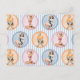 Estas gals são um retrô divertido para o passado. Em rosa, azul, laranja com listras no fundo.