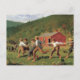 Cartão-postal de arte fino com a pintura a óleo, Snap the Whip (1872), do artista americano Winslow Homer (1836-1910). O School Boys jogando fora perto de uma sala vermelha, uma sala de aula, com montanhas distantes.