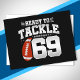 Este divertido design de aniversário de futebol é perfeito para uma festa de aniversário com tema de futebol de 69 anos para celebrar 69 anos de idade! Também é ótimo para uma festa de aniversário de casamento de 69 anos para casais que celebram seu 69º aniversário juntos. Recursos "Pronto para Enfrentar 69" citação com gráfico de futebol. Perfeito para qualquer um que ama futebol!